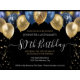 Balões de ouro e prata falsos e balões dourados na borda superior. Todo o texto é ajustável e fácil de mudar para as necessidades do seu próprio partido. Excelente elegante do modelo guarde a data festa de aniversário design. a qualquer ano, a idade pode ser alterada