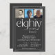 Oitenta anos adoraram. Convite de aniversário preto e branco elegante com três fotos. Surpreenda seu amado com uma festa especial celebrando seus 80 anos de vida.