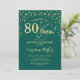 Convite de aniversário 80. Design elegante com ouro brilhante e verde. Saúde para 80 anos! Envie-me uma mensagem se precisar de mais personalização.