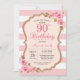 Convite de aniversário de 90 de Peonies Rosa Floral para mulheres. Dourada Glitter. Chic Flor Floral de Cor de Água Espelhada. Listras brancas e rosa. 13 15 16º 18º 20 21rua 30 40º 50º 60º 80 de 70 100º, qualquer idade. Digital Imprimível. Para mais personalização, clique no botão "Personalizar" e use nossa ferramenta de design para modificar este modelo.