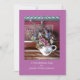 A frente deste convite é uma fotografia original de belas flores em um bule vintage, em um fundo púrpura pálido. A cor de fundo é "Orquídea Radiante", a Cor Pantone do Ano para 2014. O texto é branco. Um belo convite para uma festa de aniversário 90. Foto original de Marcia Socolik. Todos os Direitos Reservados © 2014 Alan & Marcia Socolik.