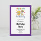 Convite de aniversário 9 com estrutura roxa