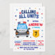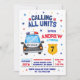 Convite de Aniversário à Polícia das Crianças Modernas Pessoais! Perfeito para uma festa de aniversário temática policial, este convite elegante e divertido apresenta gráficos ousados, de crachás a carros esquadrão. Projetado com uma reviravolta moderna, é personalizável com os detalhes do seu evento, fazer único e excitante para o grande dia do seu pequeno oficial. Este convite dá o tom para uma comemoração divertida e cheia de ações que seus hóspedes vão amar! 🎉 🚓 🎟️