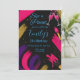 Celebre em estilo com este glamouroso convite de aniversário do Sip & Paint! Perfeito para um aniversário de 21 anos ou qualquer pintura adulta, este design chic apresenta fortes pinceladas em rosa, ouro e roxo sobre fundo preto, com óculos de champanhe e elementos de tinta para aquele talo artístico. Personalize todo o texto usando os recursos fáceis de editar do Zazzle. Uma opção fabulosa para festas de vinho e design, noites de tinta e aniversários de marco!
