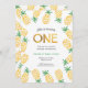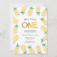 Tome uma primeira festa de aniversário tropical para a sua pequenina! Este adorável convite de aniversário inclui ananás com aquarela e ouro falso, que é moderno e tendencial. Convide com estilo! Todos os detalhes, incluindo (exceto idade), são personalizáveis.