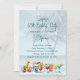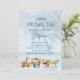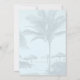 Convites de aniversário adulto com tema tropical de palmeiras. Uma borda inferior de coquetéis sofisticados decora a frente com quatro modelos de texto azul. A escrita é usada para o título da festa e o nome do homenageado. O texto impresso está em forma de parágrafo para data, hora, local e qualquer outra informação necessária. Também oferecido como download para compartilhar online e economizar dinheiro e tempo.