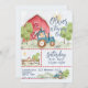Celebre o grande dia do seu pequeno com este adorável Convite de Aniversário Farmyard Friends! Com animais pintados à mão em aquarela andando de trator diante de um celeiro vermelho brilhante, este design caprichoso é perfeito para um primeiro aniversário ou qualquer festa de criança. Com animais alegres da fazenda usando chapéus de festa, árvores brincalhonas e um cenário ensolarado do campo, este convite prepara o cenário para um dia alegre e memorável. Personalize com o nome do seu evento, data, hora, local e detalhes de RSVP. Ideal para um tema de festa de pátio de celeiro, zoológico ou ao ar livre!