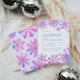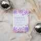 Convite de inverno de 1999 com aquarela, flocos de neve roxos e tipografia elegante