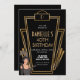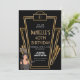 Convite de aniversário de deco de arte 1920 preto e dourado. Veja os cartões acessórios correspondentes.