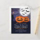 Cartão de Convite de Aniversário Assustador do Jack O'Lantern para Festa de Halloween. Convites personalizados para festa infantil com abóboras assustadoras do Jack O'lantern e morcegos sobre a lua. Modelo fácil de usar para adicionar detalhes da sua festa.