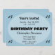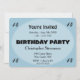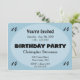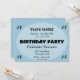 Azul com grandes números negros dá a isto uma aparência moderna. Adicione a idade ou deixe-a vazio - Back diz Vem Festa, mas pode ser mudada para dizer o que você gosta. Preencha com as informações de RSVP.