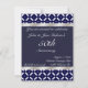 Este lindo convite de aniversário é perfeito para o seu aniversário de casamento, apresentando um padrão geométrico azul e branco no topo e na parte inferior. Um centro azul sólido tem texto branco pronto para as informações personalizadas da sua festa. Bandas de prata percorrem o topo e a parte inferior para dar brilho. Personalize para atender às necessidades da sua festa.