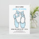 Este clássico, simples, mas elegante design, apresenta pantufas de balé de dedos pontiagudos em azul de bebê macio. Um convite bonito para sua bailarina favorita. Todo texto pode ser personalizado de acordo com o seu gosto.