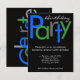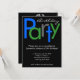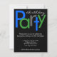 Bom convite de aniversário, personalize com qualquer idade. Estilos de blocos divertidos e alegres, com letras azuis brilhantes, verdes e cinzas sobre fundo preto. O design moderno elegante é perfeito para um homem ou uma mulher, uma menina ou um convites de festas adolescente. Use qualquer idade! Personalize on-line com os detalhes do evento.
