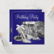 Convites de festa de aniversário azul real e pérola prateada elegante e sapato de salto alto. Este lindo convite de festa de aniversário azul real e prateado é facilmente personalizado para o seu evento, bastando escolher o botão "Personalize!" para começar a adicionar os detalhes do evento, estilo de letra, tamanho e cor da letra e texto. Por favor, note que todos os adesivos, cartões e desenhos de convites que você encontrará na Zazzle são gráficos impressos sem joias, laços, relevos, rebaixamentos ou peças ou partes adicionadas.