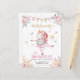 Este lindo design certamente agradará à sua pequena bailarina no dia da sua festa de aniversário. Este design de convite tipo postal apresenta uma bonita bailarina unicórnio decorada com detalhes florais rosa, pena, corações e uma faixa que diz "Festa de Aniversário Feliz".