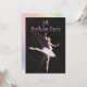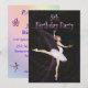 Uma bela bailarina dançando em um convite de aniversário. A bailarina está vestindo um tutu branco, e está em ponto.