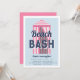 Convites de aniversário de verão bonitos para a celebração do seu beachside exibem uma ilustração de cabana de praia, rosa e branca, com "bash de praia" em marinho azul e branco em letras retrorreflectoras. Personalize com seus detalhes de festa de aniversário abaixo.