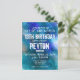 Cartão postal de convite de aniversário Galaxy Blue Aqua Aquarela. Ótimo para meninos e meninas.