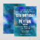 Convite de Aniversário Blue Aqua Galaxy Aquarela