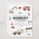 Zona de Construção! Celebre o aniversário do seu trabalhador da construção com este caminhão de lixo e o convite de escavação em cores de som. Personalize facilmente este convite com os detalhes do evento clicando no botão "Personalizar".