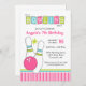 Convite de aniversário rosa-boliche