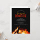 Este convite de aniversário da fogueira do quintal apresenta um design perfeito e fascinante para uma celebração de outono. O fundo é um negro profundo, permitindo que as imagens vibrantes e o texto se destacem. No fundo, há uma imagem brilhante de uma fogueira ruidosa, adicionando calor e energia ao design.