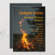Convites de festas de aniversários de bonfire para o seu aniversário. Cartões noturnos com chamas laranja tremendas e faíscas voando para a noite. As modelos de texto divertido são alinhadas ao lado direito do papel, em cores laranja e amarela. A primeira linha é "Backyard Bonfire", com as linhas seguintes a serem usadas para a idade, festa e nome da honra. Em seguida, use o parágrafo para data, hora, local e RSVP, com quaisquer outras informações que você escolher. Perfeito para celebrar o aniversário de um marido ou filho adolescente. Comprar como um download e compartilhamento instantâneos digitalmente ou comprar a versão impressa para email.