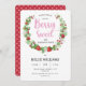 Prepare-se para uma festa de aniversário doce de morango! Este é um convite de aniversário com uma coroa fofinha de morangos, flores brancas e verde. É complementada com uma fonte divertida e com um adorável lado inverso das sementes de morango. Perfeito para a festa da festa de aniversário de sua filhinha a qualquer hora, de primavera a verão.