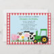 Esta festa de aniversário bonito da fazenda 5x7 convida tem um trator no fundo com alguns animais de fazenda que incluem um porco, a vaca, e um carneiro. Você pode facilmente personalizar sua informação do partido no meio. Os gráficos por BabyStar projetam em MyGrafico.com