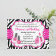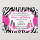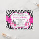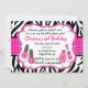 Comece seus termas das meninas, prepare-os, faça-os sobre a festa de aniversário fora do direito com nosso convite preto e branco colorido e na moda brilhante bonito do impressão da zebra. Nosso Manicure caçoa o dia da festa de aniversário dos termas de características do convite do divertimento um fundo bonito do impressão da zebra com uma beira cor-de-rosa e branca das bolinhas com um quadro cor-de-rosa com verniz para as unhas e um batom. Um toque especial extra, vê a parte traseira de harmonização no convite! Design de BabyStar do ©
