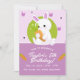 Coelho bonito com cenoura, convite de aniversário ou convite de festas Páscoa. Editável para que você possa personalizar facilmente.