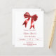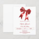 Um fundo branco, decorado com um grande arco vermelho. Personalize e adicione um nome e detalhes da parte. 1 folha = 1 convite impresso de borda a borda.