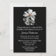 Convite de aniversário preto elegante, com uma fotografia bonito de uma flor branca, no topo. Personalize o texto branco para atender às suas necessidades de eventos especiais. Um convite muito bonito que funcionaria para aniversários também.