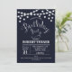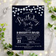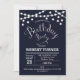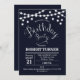 Convite de aniversário branco azul marinho. Design elegante em marinho e branco. Perfeito para uma celebração rústica. Possui luzes de fada de cadeia e fonte de script na moda. Personalize com seus próprios detalhes. Envie-nos uma mensagem se precisar de mais personalização.