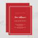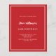 Um moderno, elegante e convite. Um fundo vermelho decorado com uma armação branca. Personalize e adicione um nome e detalhes. Texto branco. 1 folha = 1 convite impresso de borda a borda.