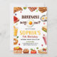Celebre o dia especial do seu pequeno com este adorável Convite de Aniversário Brunch! Perfeito para crianças que amam comida, este design colorido e divertido apresenta todos os favoritos do brunch – ovos, bacon, panquecas, waffles, torradas e muito mais! O estilo desenhado à mão e o layout alegre tornam-no ideal para uma festa de aniversário infantil, mas é totalmente personalizável para qualquer idade.