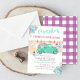 Convite de Aniversário Camionete Azul e Roxa com Menina Fazendeira em Aquarela, Flores de Outono e Abóbora.