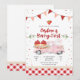 Celebre com um estilo doce com este encantador convite de aniversário temático de morango, apresentando um vintage caminhão rosa cheio de cestas de frutas vermelhas, balões e detalhes florais. A borda xadrez divertida e os detalhes de confetes festivos criam um design alegre perfeito para festas infantis, aniversários de verão ou celebrações temáticas de frutas vermelhas. Personalize com os detalhes do seu evento e encante os convidados com um convite único e atraente que define o tom para um dia cheio de diversão.