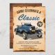 Convide seus convidados com esta festa de aniversário antiga, convidando com um belo carro vintage e a tipografia retrorreflectora contra um fundo de pergaminho. Basta adicionar os detalhes do seu evento neste modelo fácil de usar para torná-lo um convite de tipo único. Sacudir a placa para revelar uma textura rústica de madeira de celeiro na parte traseira da placa.