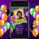 Convite de aniversário Colorido de Neon Halloween