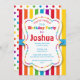 Faça sua festa de aniversário colorido e divertimento com este convite do divertimento! Listras e pontos do arco-íris das características.