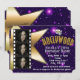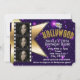 Convite de Aniversário com 3 Fotos e Estrelas Roxas de Hollywood. Personalize para qualquer evento.