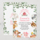 Convite de aniversário temático com aquarela fofa apresentando vários animais da fazenda, celeiro vermelho, cestas de piquenique e folhagem de eucalipto. Ótimo para uma festa de aniversário com tema de fazenda.