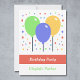 Um convite colorido para uma festa de aniversário com balões e bolinhas: será particularmente apreciada pelas crianças. Mude a mensagem e use-a para uma festa de inauguração, um chá de fraldas, pote de aposentadoria ou qualquer outra parte que você organize!