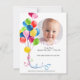 Convite de aniversário festivo com balões coloridos. Edite o número (e a cor, se desejar) para o apropriado. A parte traseira do convite apresenta a imagem da criança com informações adicionais! Editar ambos os lados deste convite.