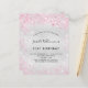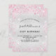 Para um aniversário de 21 anos (ou qualquer idade) elegante. Um fundo com aparência metálica prateada falsa. Decorado com pó de brilho rosa falso. Personalize e adicione um nome, idade e detalhes da festa. O nome é escrito com uma fonte manuscrita estilo caligrafia