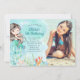 Doce convite de aniversário de sereia sob o mar. Vire nosso convite para ver um fundo azul coordenado para um toque extra especial.