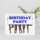 Uma fila de meninas segura uma poster anunciando uma festa de aniversário. Um convite irresistível para homens de qualquer idade.