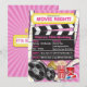 Com rolos de filme retrô, pipoca, refrigerante, ingressos e óculos 3D. Este convite vem em várias cores de fundo, incluindo rosa, roxo e vermelho.